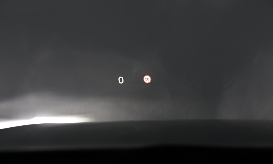 Grafisch Head-up Display voor weergave van de ingestelde snelheid van de adaptieve cruise control, verkeersbordenherkenning en navigatie aanwijzingen