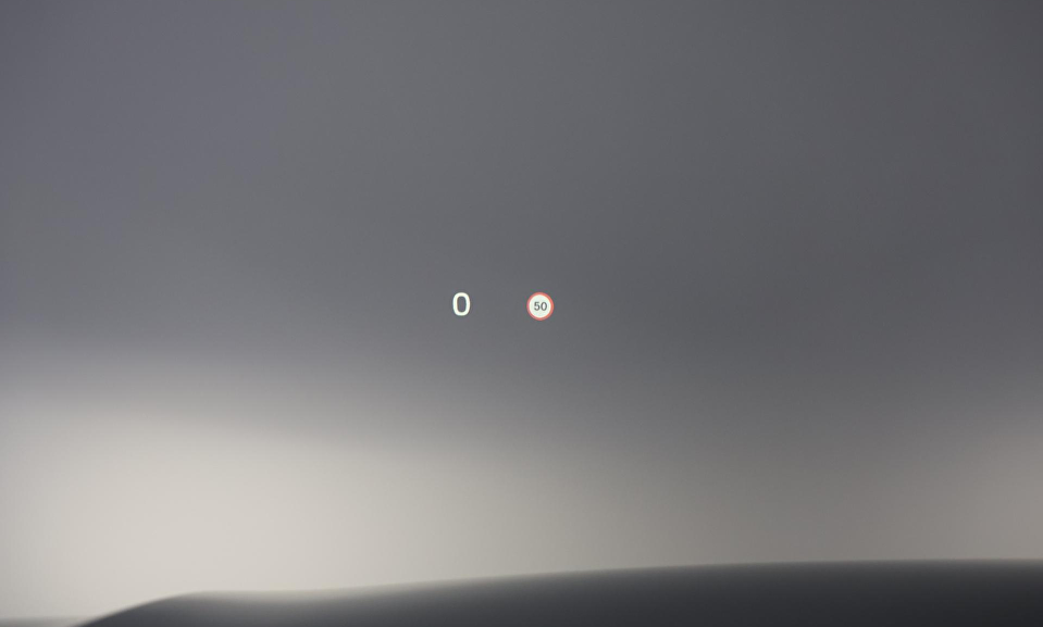 Grafisch Head-up Display voor weergave van de ingestelde snelheid van de adaptieve cruise control, verkeersbordenherkenning en navigatie aanwijzingen