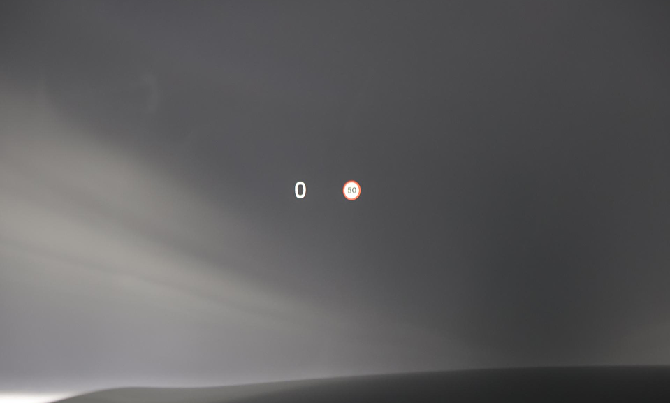 Grafisch Head-up Display voor weergave van de ingestelde snelheid van de adaptieve cruise control, verkeersbordenherkenning en navigatie aanwijzingen