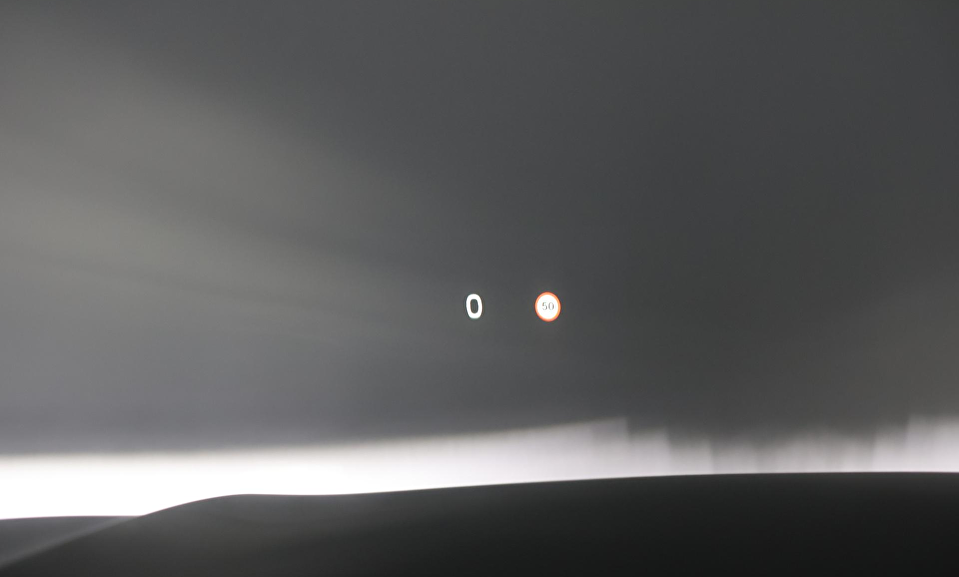 Grafisch Head-up Display voor weergave van de ingestelde snelheid van de adaptieve cruise control, verkeersbordenherkenning en navigatie aanwijzingen