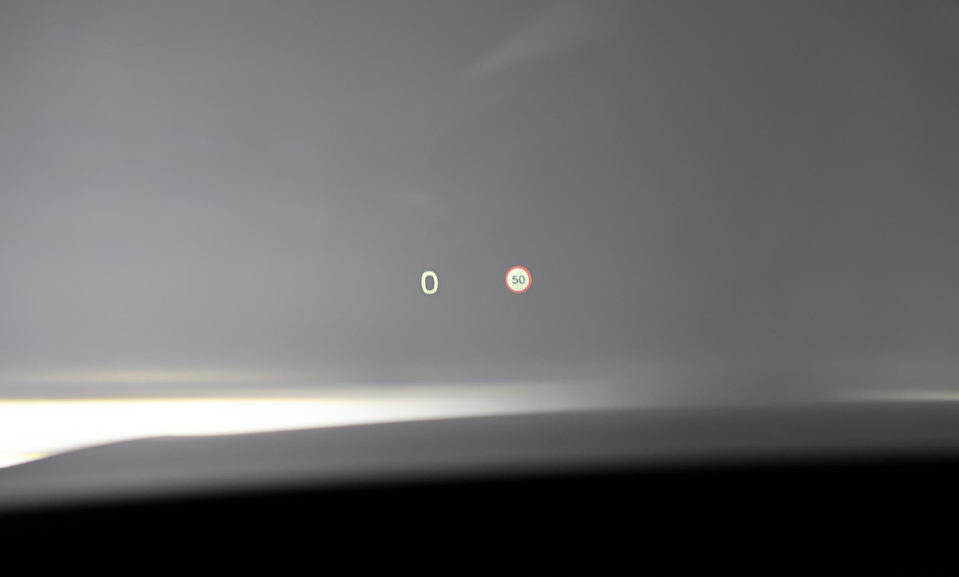 Grafisch Head-up Display voor weergave van de ingestelde snelheid van de adaptieve cruise control, verkeersbordenherkenning en navigatie aanwijzingen