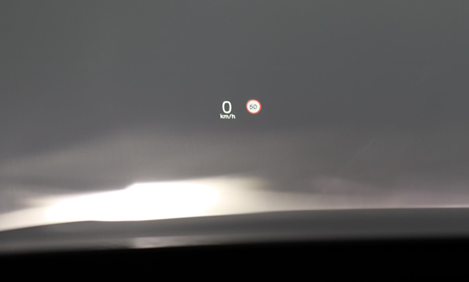 Grafisch Head-up Display voor weergave van de ingestelde snelheid van de adaptieve cruise control, verkeersbordenherkenning en navigatie aanwijzingen