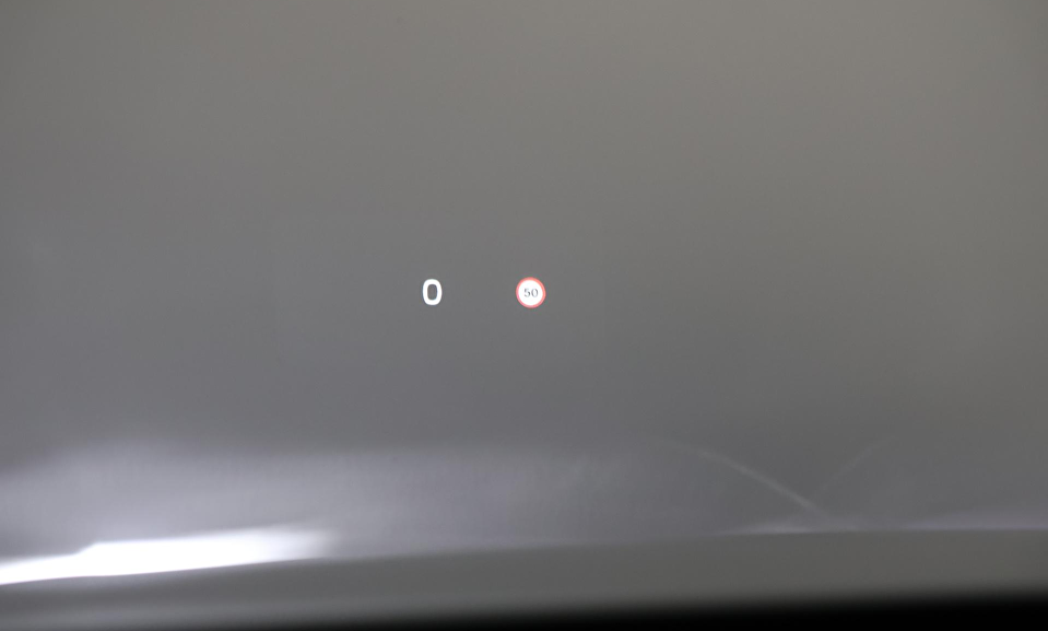 Grafisch Head-up Display voor weergave van de ingestelde snelheid van de adaptieve cruise control, verkeersbordenherkenning en navigatie aanwijzingen