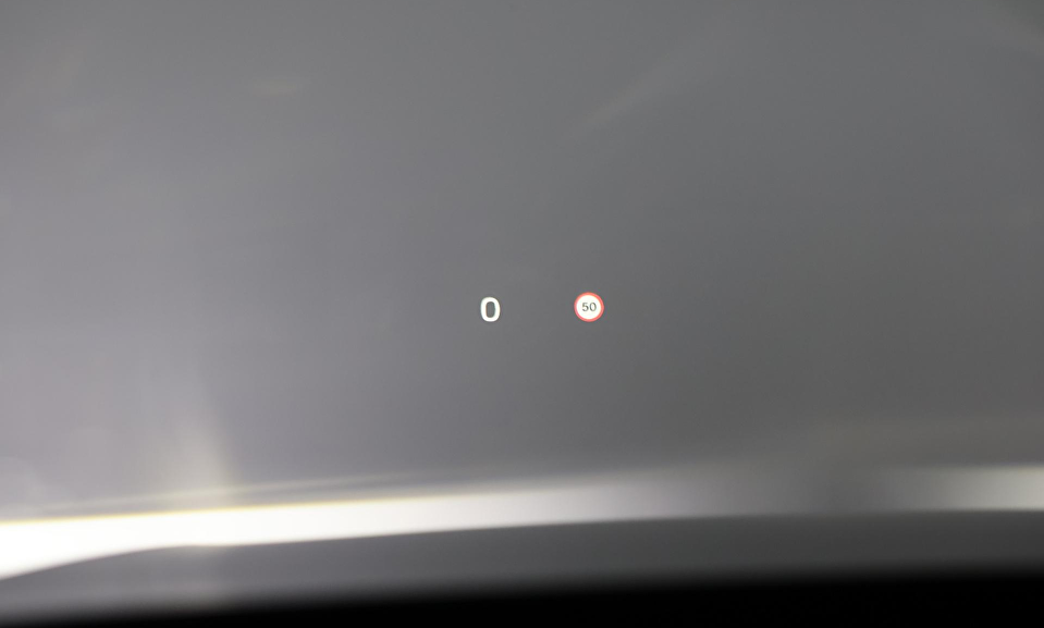 Grafisch Head-up Display voor weergave van de ingestelde snelheid van de adaptieve cruise control, verkeersbordenherkenning en navigatie aanwijzingen