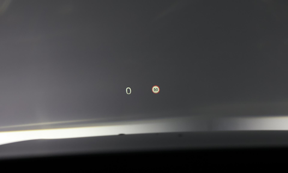 Grafisch Head-up Display voor weergave van de ingestelde snelheid van de adaptieve cruise control, verkeersbordenherkenning en navigatie aanwijzingen